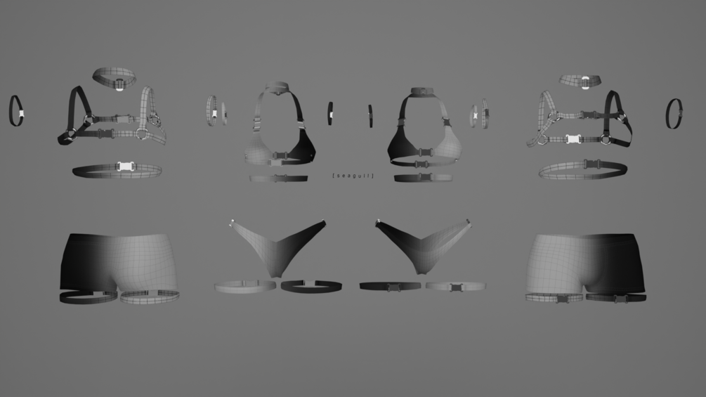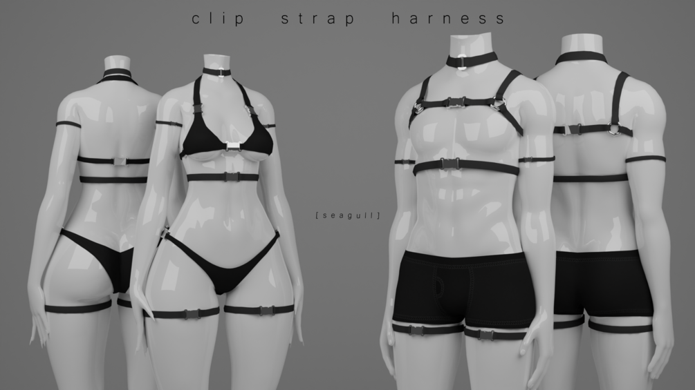 This Clip Strap Harness has been modelled for Zinpia's Fit base.