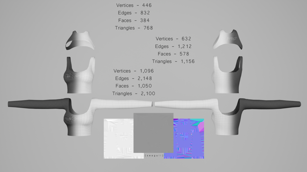 You will get THREE separate meshes which are fully customisable with all the textures which come with this top!